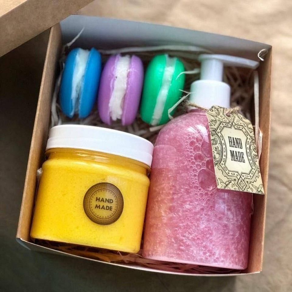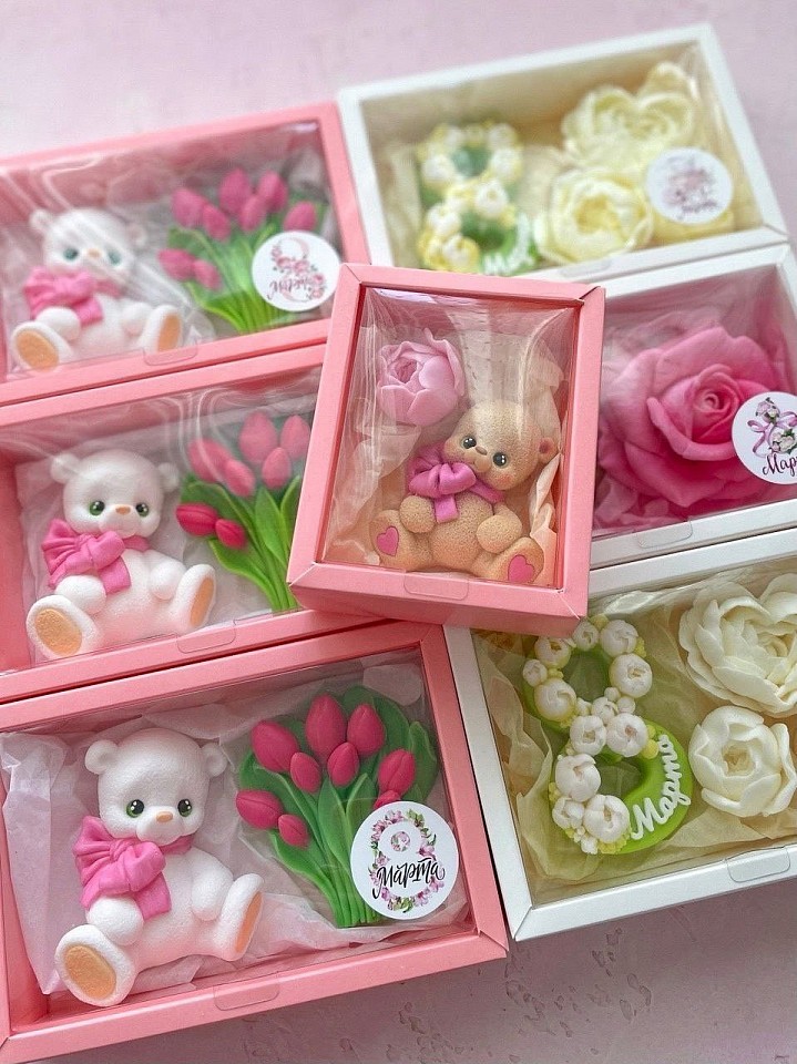 Мыло ручной работы изготавливается только из натуральных ингредиентов, без вредных химических добавок. Основу составляют: